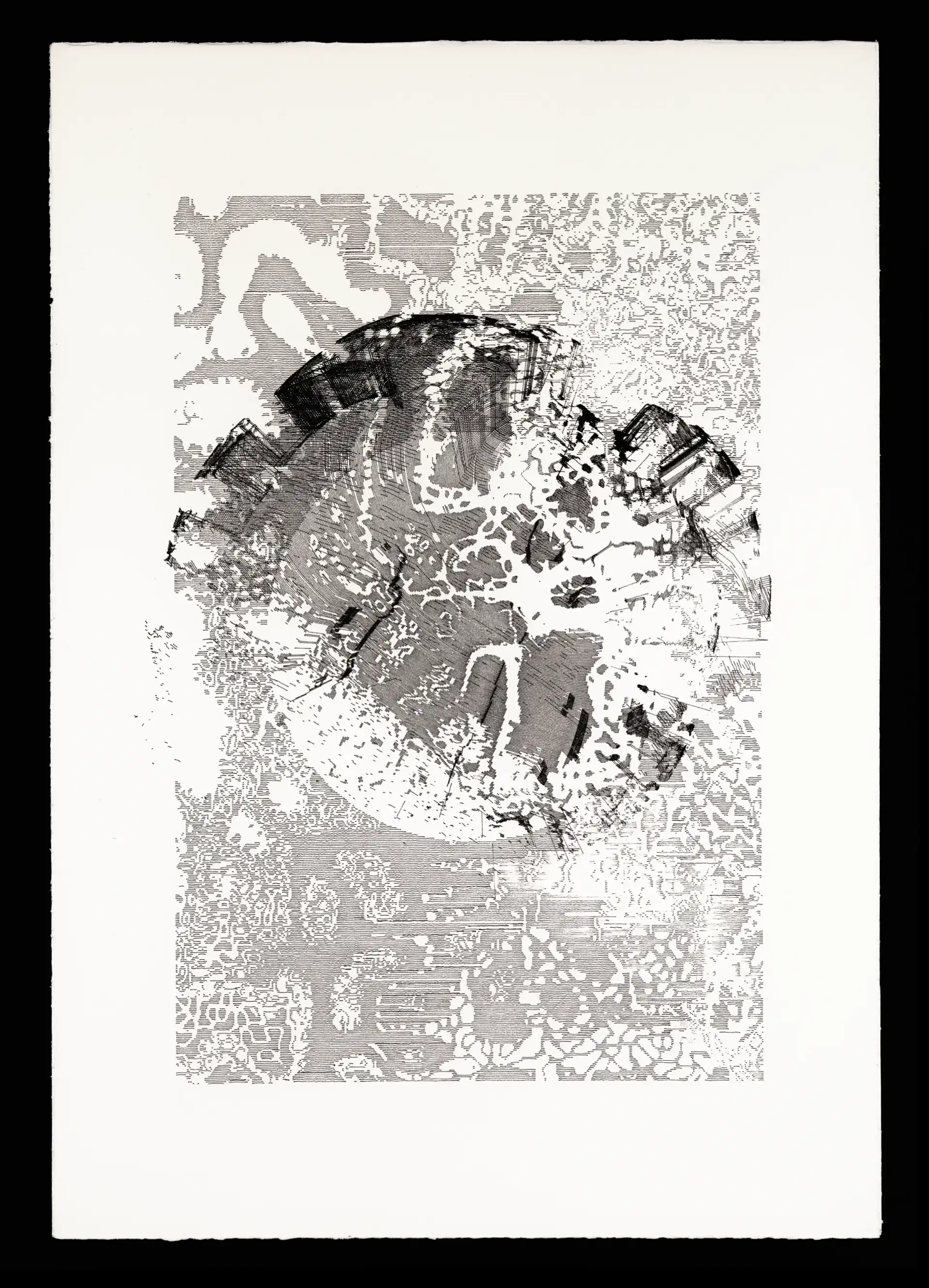C’est après de nombreuses explorations, d’abord centrées sur l’aspect figuratif et organique du rendu, puis sur l’abstraction de la forme par sa géométrisation – que ce travail se poursuit autour de la couleur afin de traduire la luminosité de cet événement.